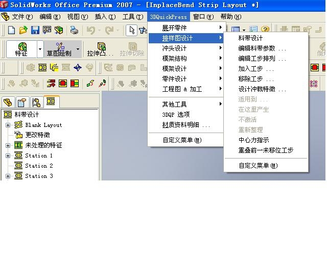 SolidWorks公司认证的黄金合作伙伴3DQuickPress是一套完全整合于 SolidWorks 的三维连续冲模设计解决方案。与 SolidWorks 统一界面,完全一致的使用风格。本系统包含零件分析及展开、料带布排及冲头设计等功能,为电子,家电及汽车结构设计等行业提供从三维建模,零件展开,三维组装到二维出图的完整解决方案。