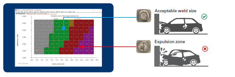 找到良好参数的工艺窗口是实现更佳焊接质量的焊接计划、工艺控制和生产维护的关键。SORPAS®的工艺优化和Excel批量处理功能可用于预测提高焊接质量、提高生产稳定性和减少飞溅。