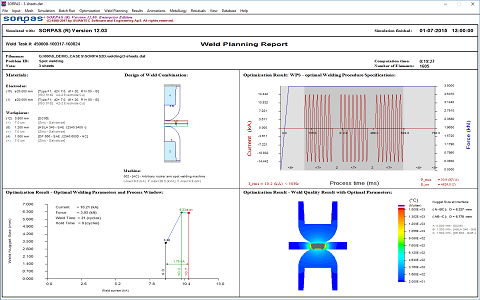 根据用户定义的焊接任务说明(WTD),其中包含板材,电极,焊接机的类型以及所需的焊接质量的信息,SORPAS®将自动优化并找到更佳的焊接电流,力,焊接时间和保持时间。