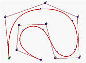 其中 Ni,p(u)是 p次B-样条基函数。 B-样条曲线形式与贝塞尔曲线相似 。不像贝塞尔曲线, B-样条曲线包含更多信息,即:一系列的 n+1 个控制点, m+1个节点的节点向量,次数 p。 注意n, m 和 p 必须满足m = n + p + 1。更准确地,如果我们想要定义一个有 n + 1控制点的p次B-样条曲线,我们必须提供n + p + 2 个节点 u0, u1, …, un+p+1。另一方面,如果给出了一个m + 1 个节点的节点向量和n + 1 控制点,B-样条曲线的次数是p = m – n – 1。对应于一个节点ui的曲线上的点, C(ui),被称为节点点(knot point)。因此,节点点把B-样条曲线划分成曲线段,每个都定义在一个节点区间上。我们将在曲线细分页证明这些曲线段都是 p 次的贝塞尔曲线。